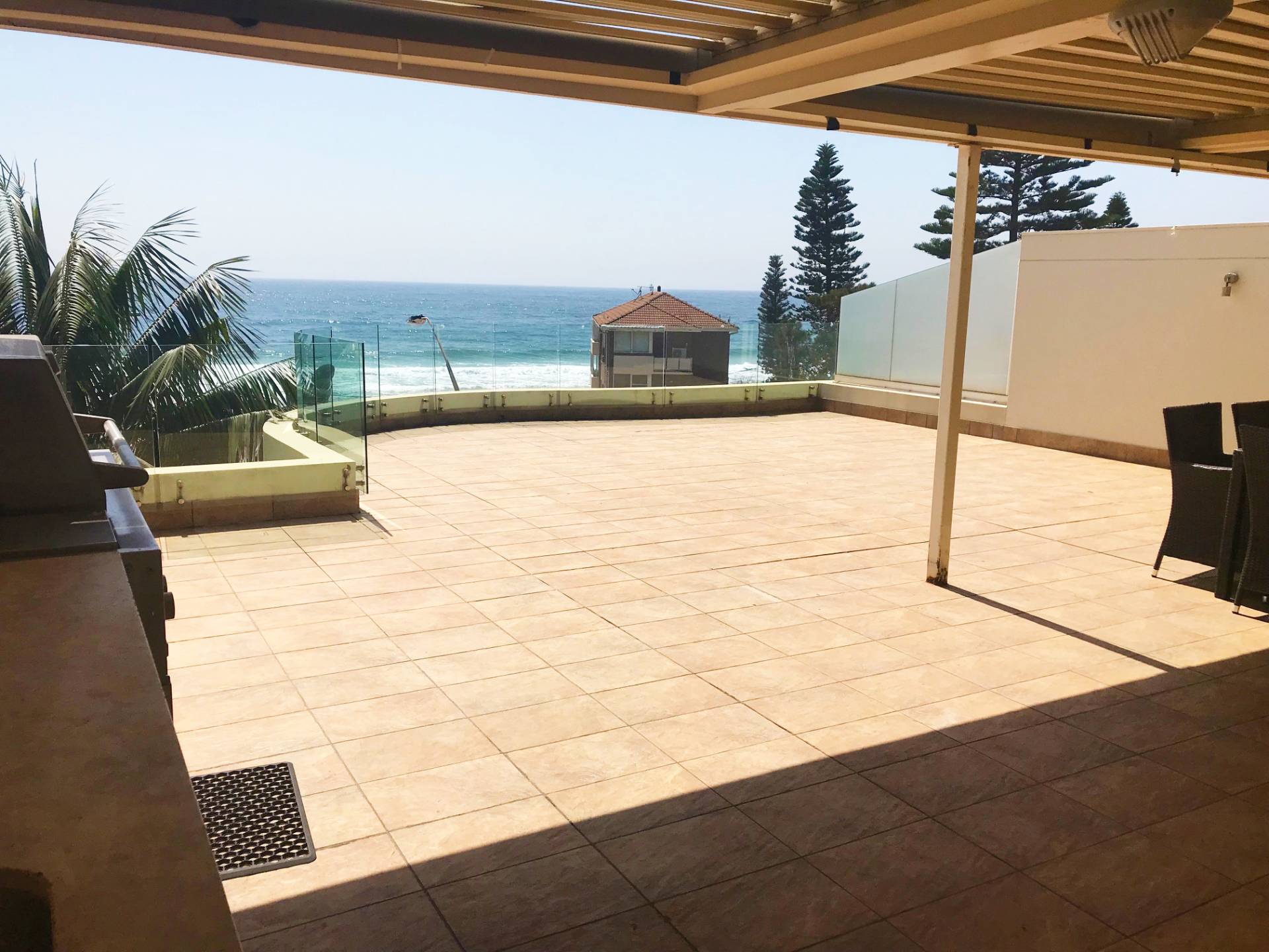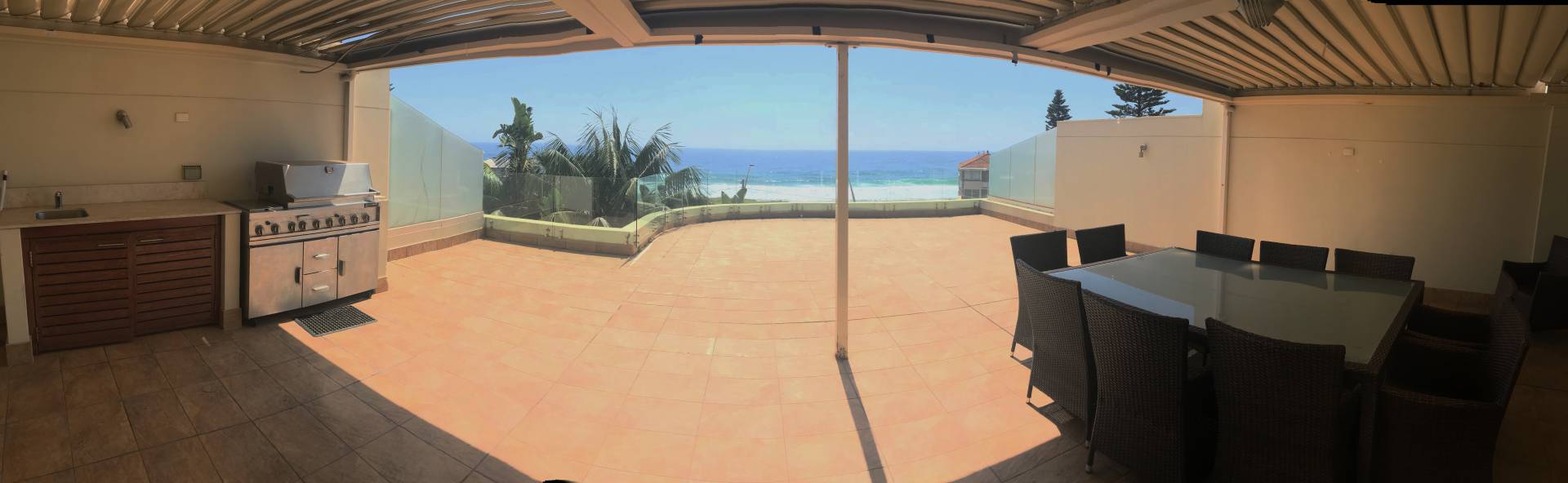 -Enormous roof top private terrace with stunning beach and ocean views with built in BBQ & kitchenette and vergola roof over a portion of the terrace space