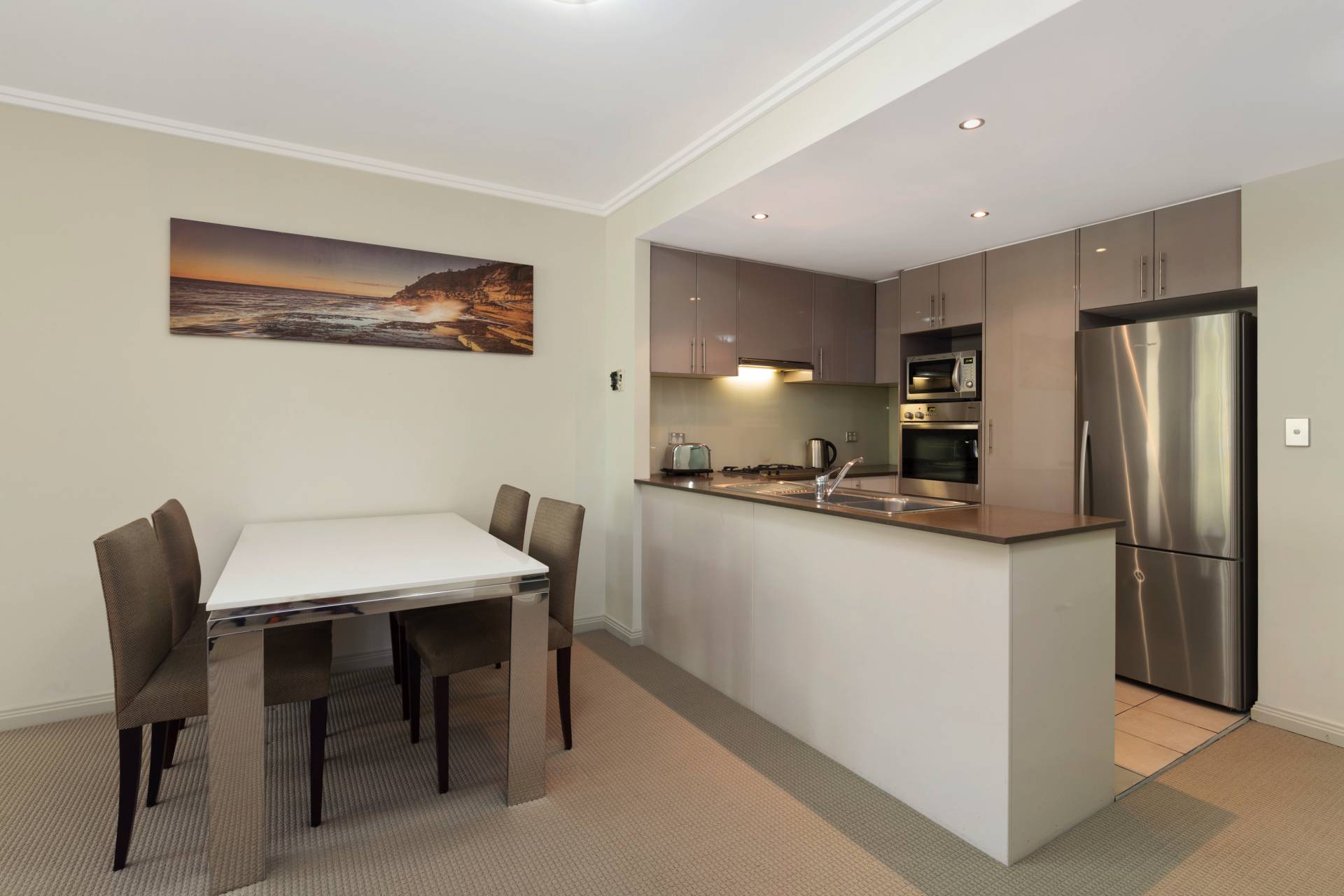 -Gourmet gas kitchen, stone benchtops, quality stainless Miele appliances and dishwasher