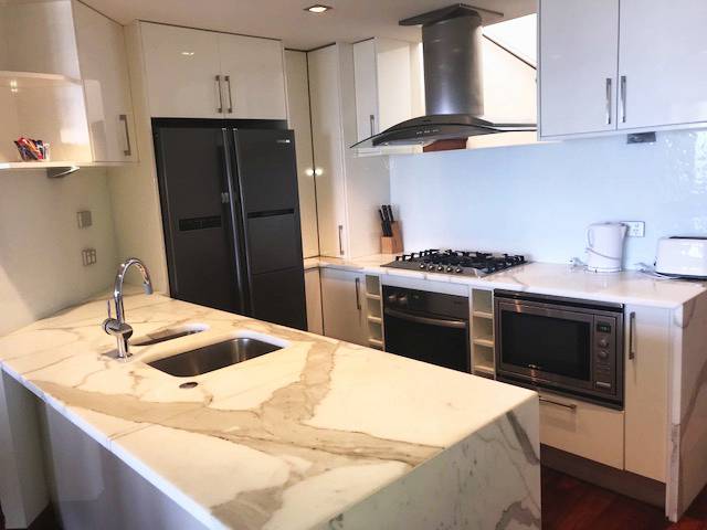 -Gourmet gas kitchen boasts stone bench tops, quality stainless Miele appliances and dishwasher