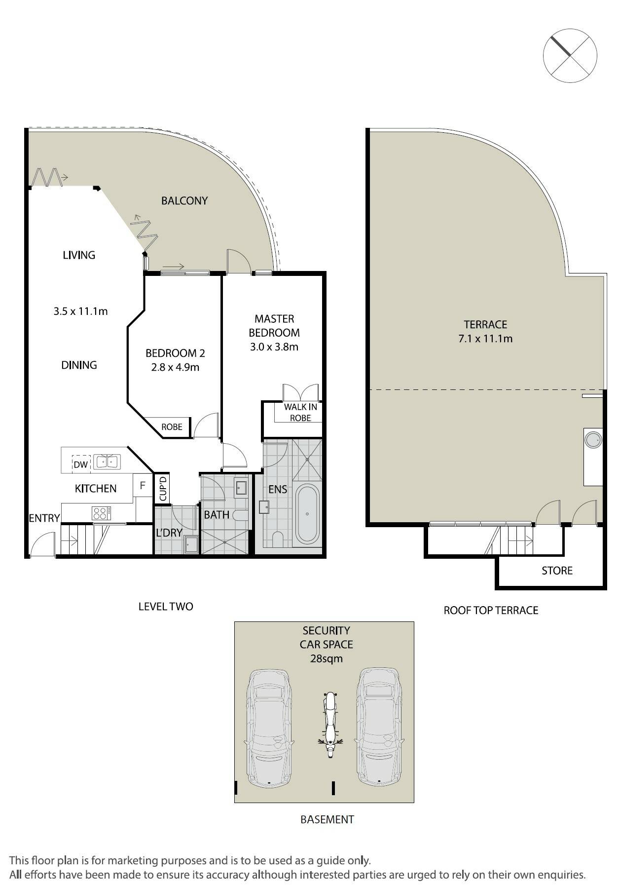 - Personal rooftop terrace with ocean views, gas, water and sick, accessed via an internal staircase